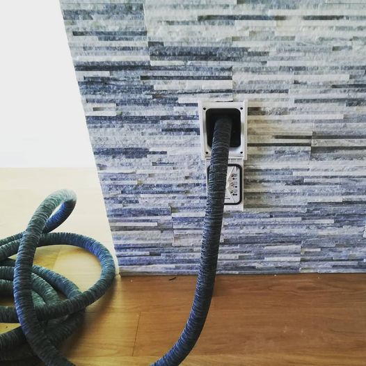 Il concetto è geniale nella sua semplicità: il tubo flessibile non va più riposto in un armadio, ma alloggia direttamente all'interno della rete tubiera nel muro, dietro la presa aspirante.
